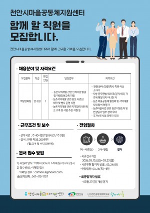 2026년 천안시마을공동체지원센터 신규직원채용…