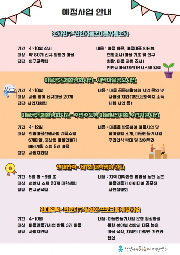 글제목 : [4월호 뉴스레터 - 고정] 이런 사업 할거예요 페이지 정보 작성자 관리자 작성일 22-04-29 16:39 본문 목록 이전글[4월호 뉴스레터 - 고정] 농촌마을과 함께 인생 2막을 준비하다 "유재상 마을활동가" 22.04.29 다음글[4월호 뉴스레터 - 고정] 마을이모저모 "배꽃향 가득한 자은가리 마을" 22.04.29