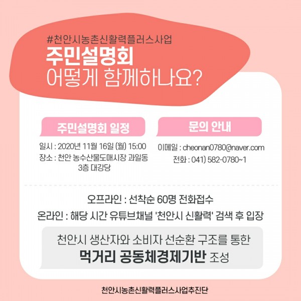문의 : ☎ 041-582-0781 (천안시농촌신활력플러스사업추진단)